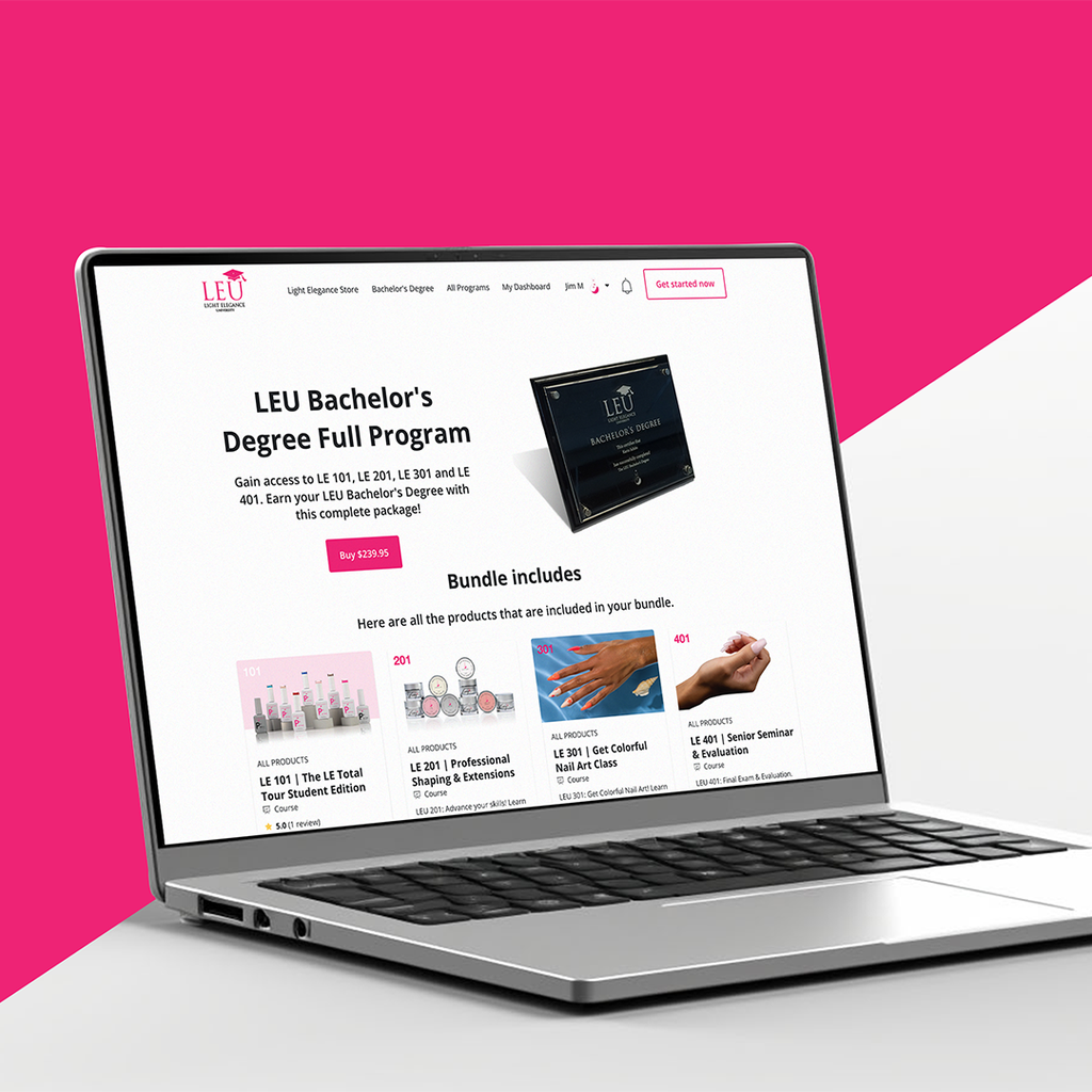 A: Light Elegance University(LEU 2.0) is our newly updated, fully online nail education platform designed to provide licensed professionals and students with advanced techniques, product knowledge, and career-boosting skills. With brand-new courses, an upgraded interface, and expert-led education, LEU 2.0 is the ultimate destination to refine your craft and grow your business.