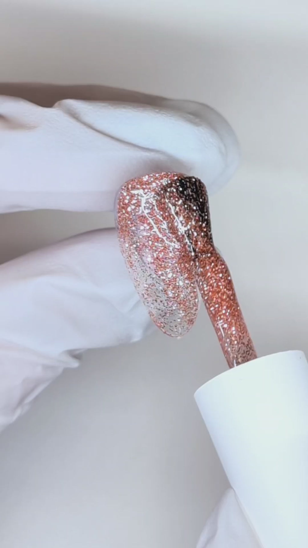 A dazzling, full-coverage rose gold glitter featuring a luxurious mix of white and copper sparkling particles. A sophisticated twist on a classic gold metallic glitter.
