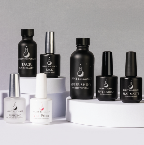 Light Elegance bonding and finishing products are expertly formulated to ensure superior adhesion and a flawless finish for every service. Whether you're creating long-lasting shine or a soft matte look, these essential steps complete every LE enhancement with strength, durability, and style.